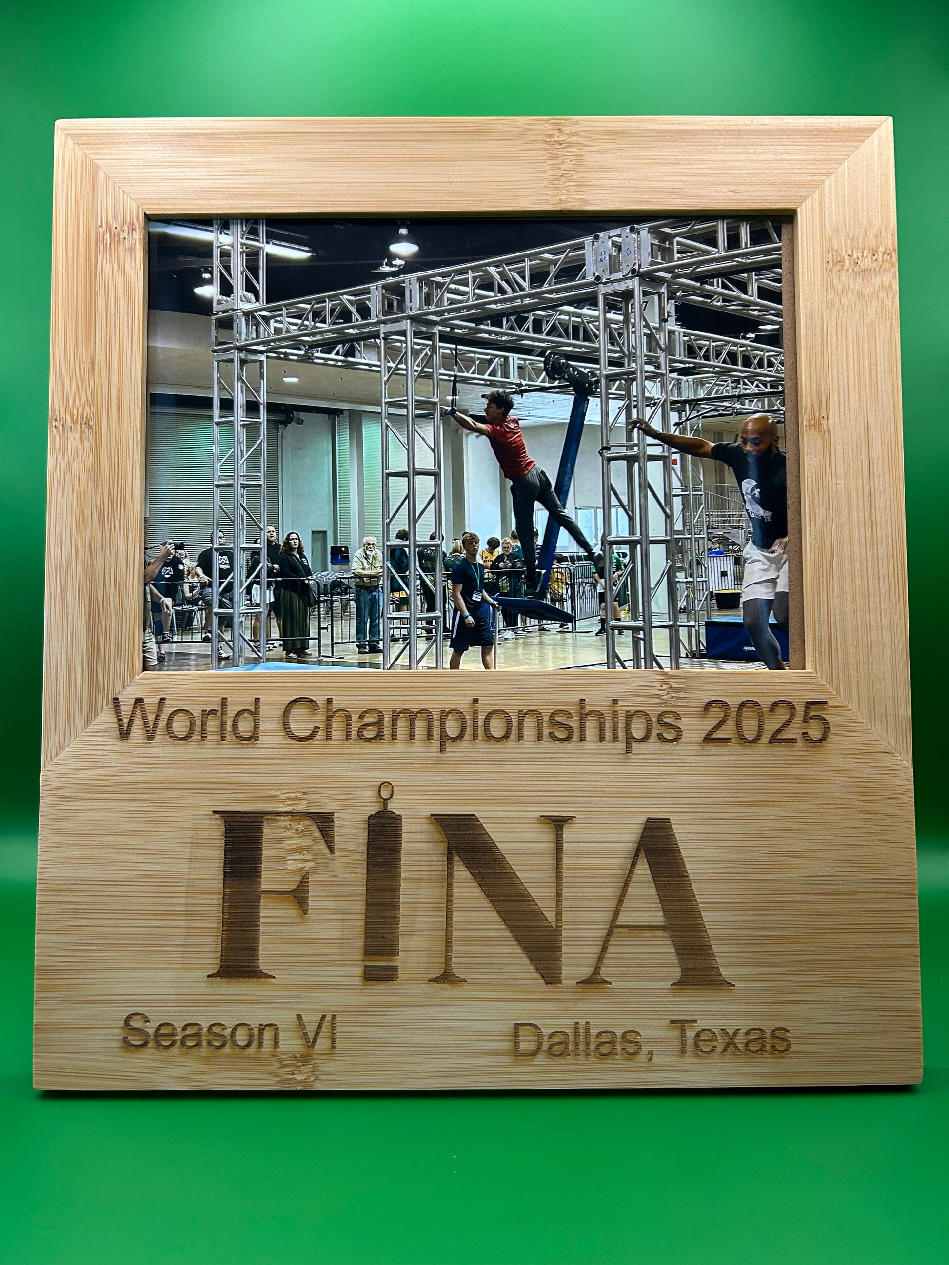 This bamboo engraved frame holds a 5x7 horizontal photo. The full frame size is 9" x 10."