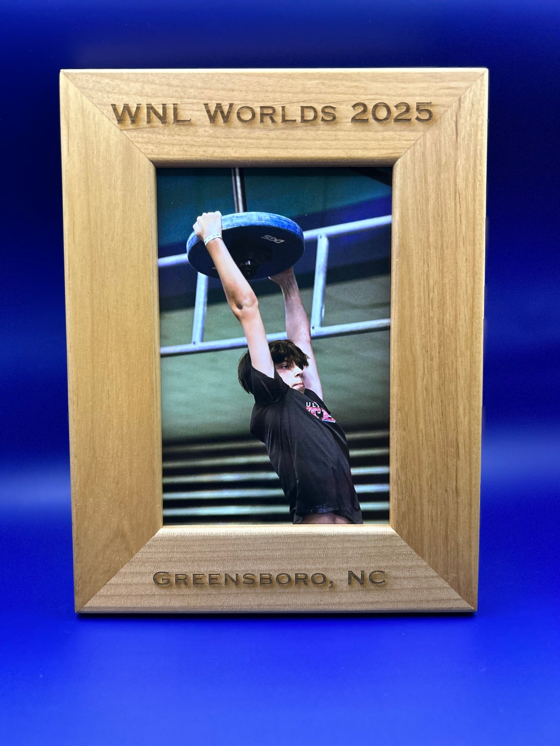 This frame is not available for purchase before Worlds due to the frames being out of stock. A similar looking frame will be available and is a 4x6 alder wood frame. This frame makes a great souvenir from your time in Greensboro and will look fantastic with one of your photos from your photo package.